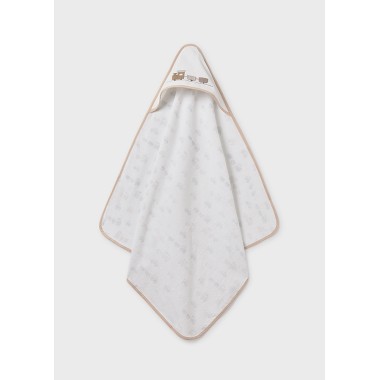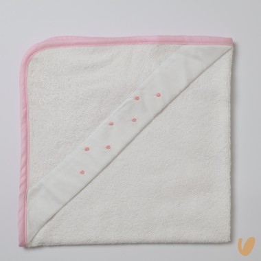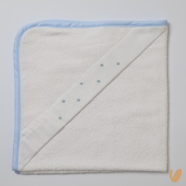 Ideal bath towel up to 24 months with triangle on one of the 4 sides to cover and dry the head of the baby