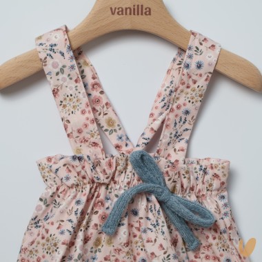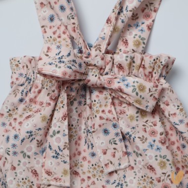 Cotton dungarees with flower print, blue bow