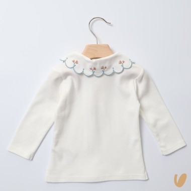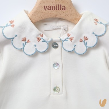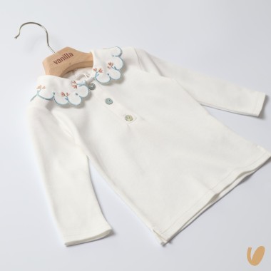 Polo in interlock with mother-of-pearl buttons and embroidered collar