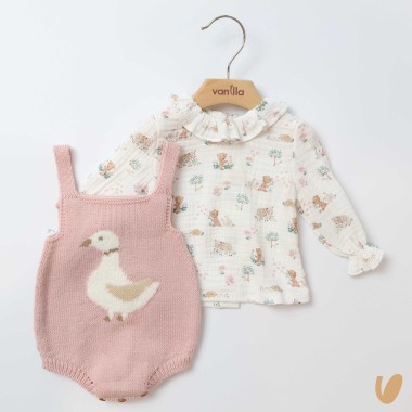 Cotton muslin camia with farm animals print