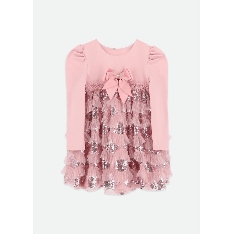 Dress with bodice in cotton jersey and skirt with Volant in tulle and paiettes