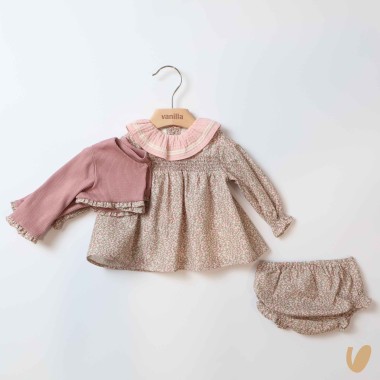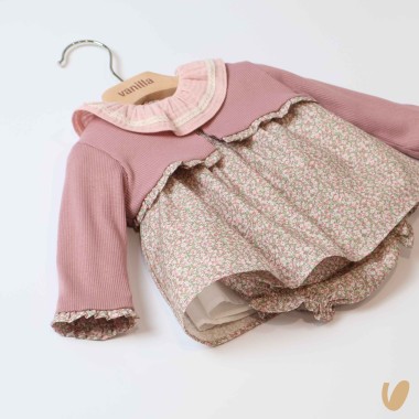 Mini flowers, bee nest on the front, muslin collar, paired culotte