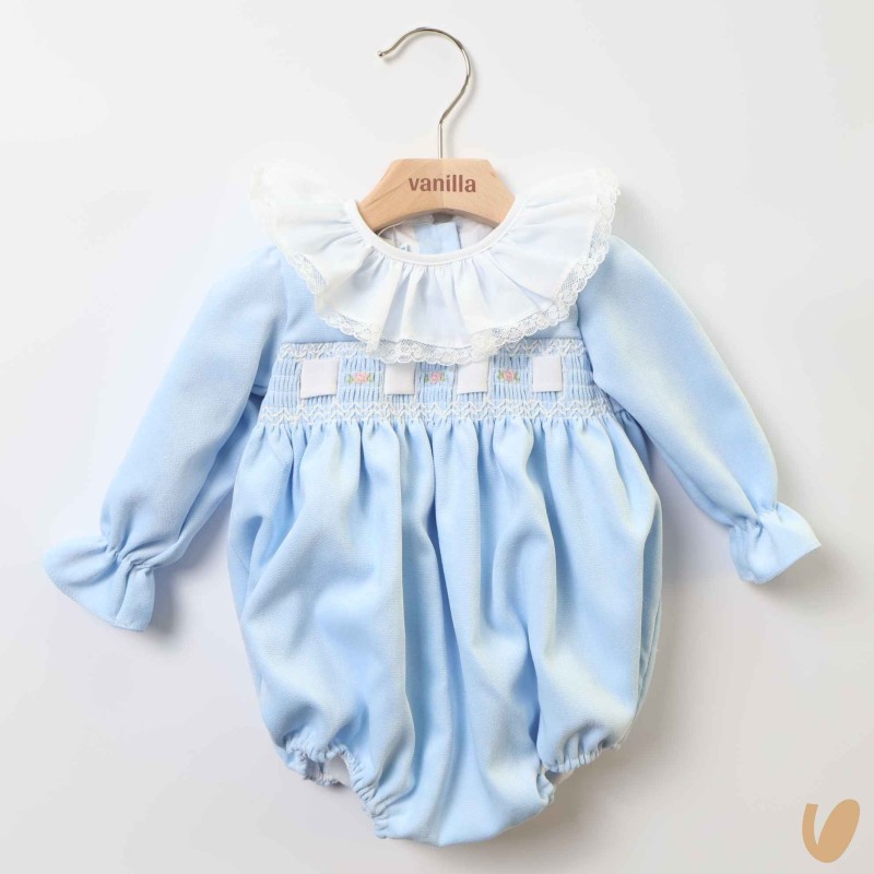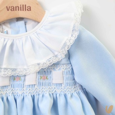 honeycomb embroidery with ribbon and roselline