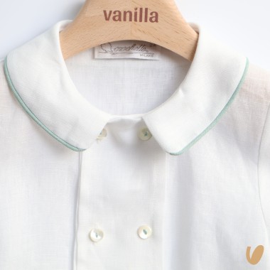 Linen and cotton double-breasted collar and cuffs with contrasting profiles