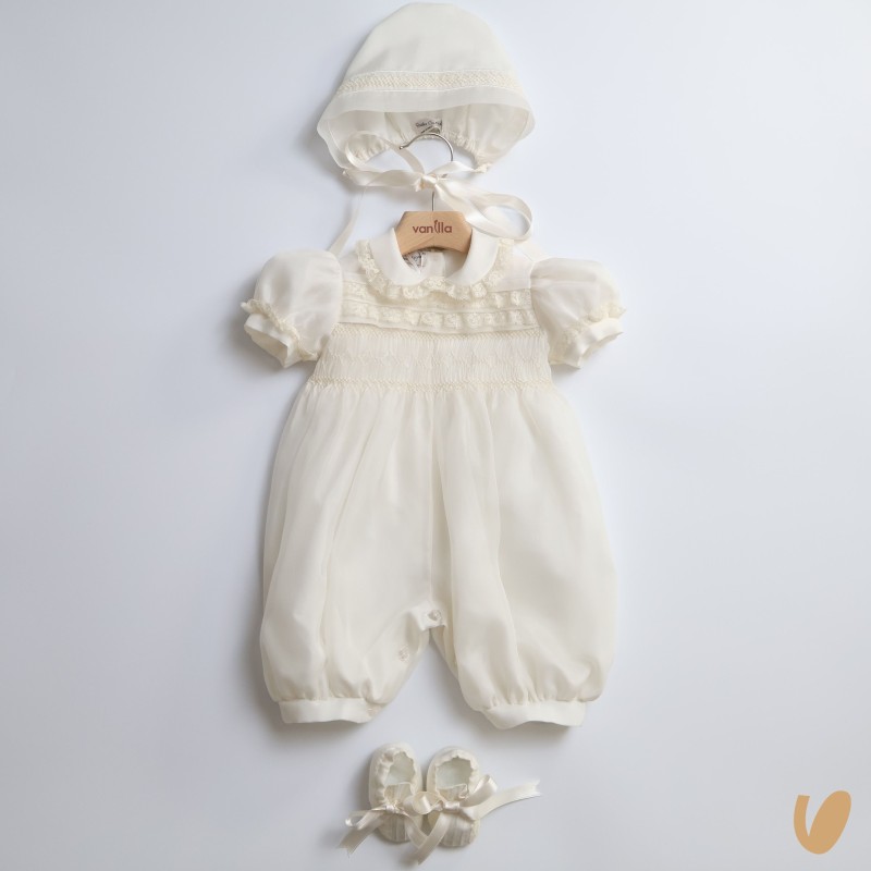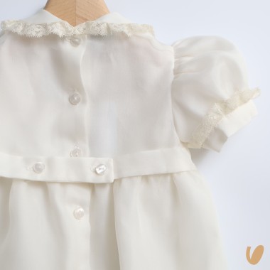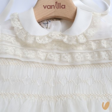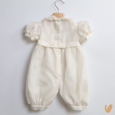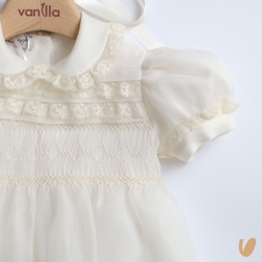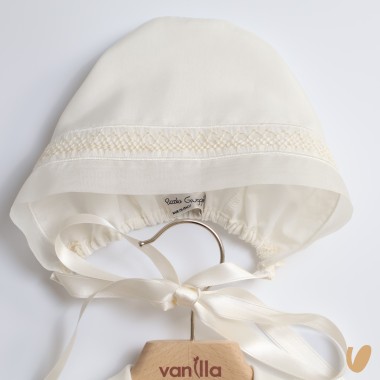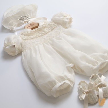 hand-made smock stitch embroidery on the corpetto and on the headset