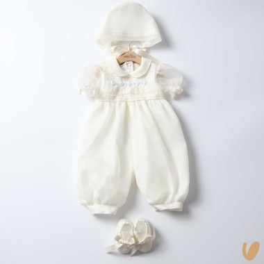 Romper in cotton piquè with central embroidery of love of the Italian historic company the stupenderia
