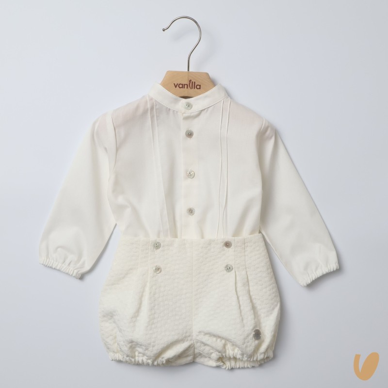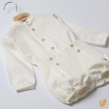 Baptismal complete with long sleeve shirt and jacquard shorts
