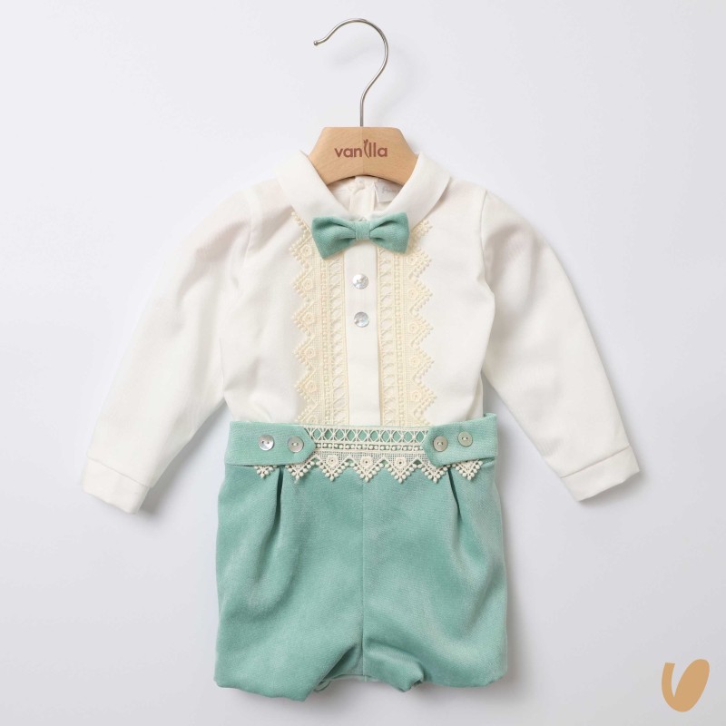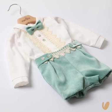 Complete baptismal composed of shirt, bermuda and removable papillon