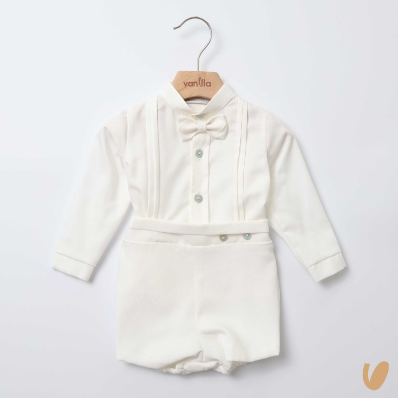 Complete baptismal composed of shirt, bermuda and fixed papillon