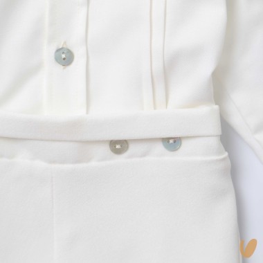 The shirt and pants are fixed with hidden buttons to make the outfit impeccable
