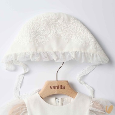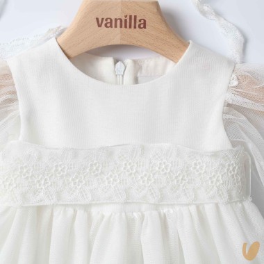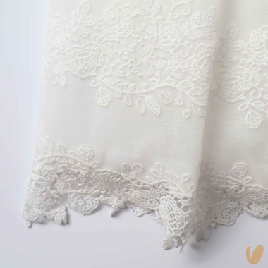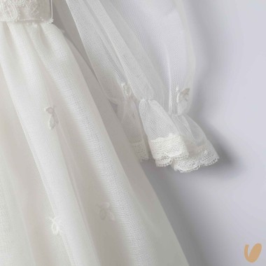 Long tulle dress with macramé embroidery