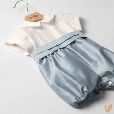 Elegant romper in prized Shantung 100% cotton, built in Italy by a historic Milanese tailoring in the heart of Brera.