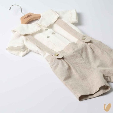 Complete with Bermuda shirt with suspenders
