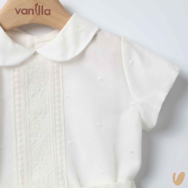Made of chiffon with polka dots, shirt with macramé insert