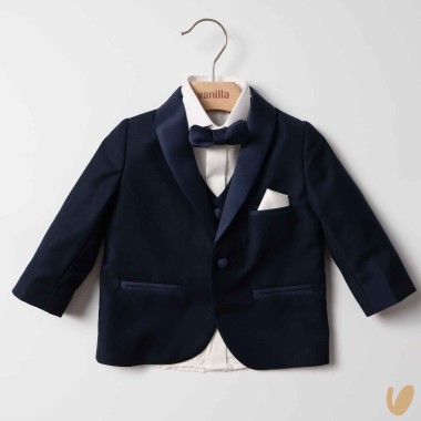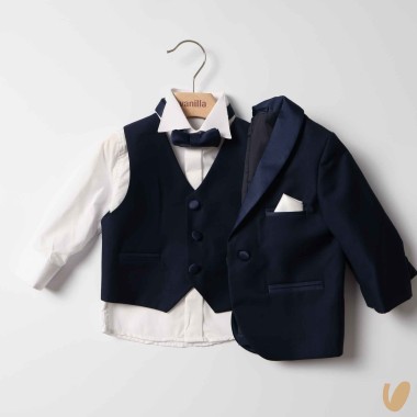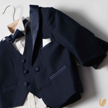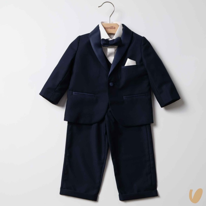 Elegant tuxedo composed of jacket, bow tie vest and trousers