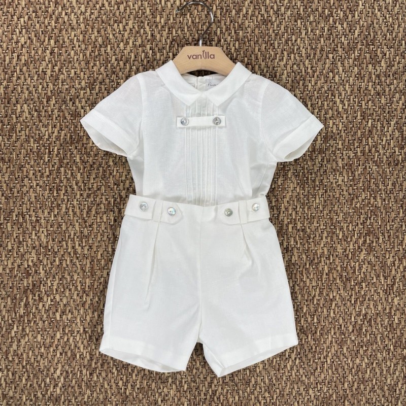 elegant bermuda with pence with medreperla buttons on the bust and hidden buttons to join the shirt