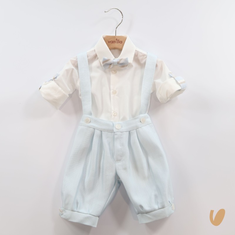 Elegant finish 3 pieces composed of salopette pants, shirt and bow tie