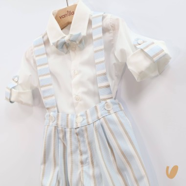 Elegant finish 3 pieces composed of salopette pants, shirt and bow tie