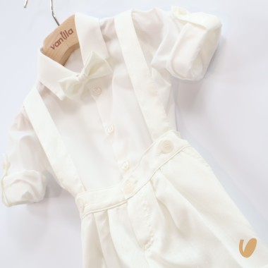 Elegant finish 3 pieces composed of salopette pants, shirt and bow tie