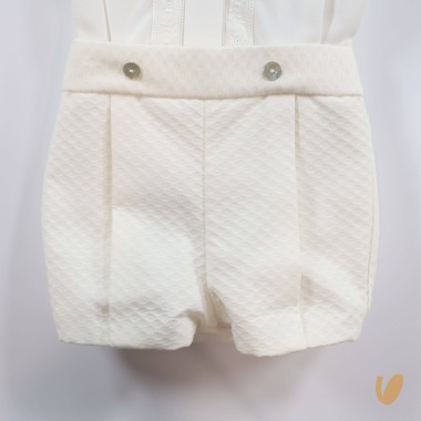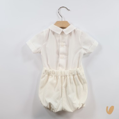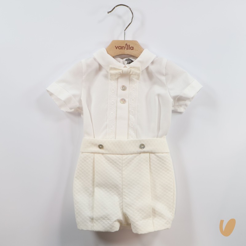 shirt with central embroidered handpiece insert, sewn bent and buttons in mother of pearl, removable bow tie, functional tan on the back