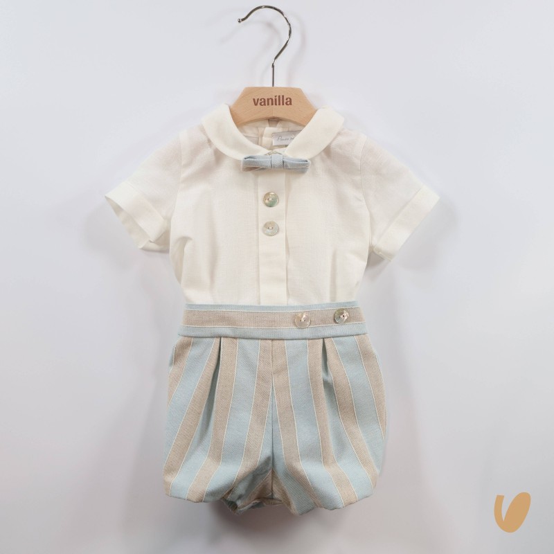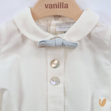 sleeve shirt with fold stitched on the front and buttons in mother-of-pearl, removable bow , functional buttoning on the back