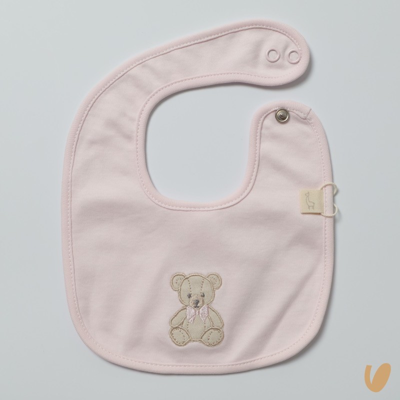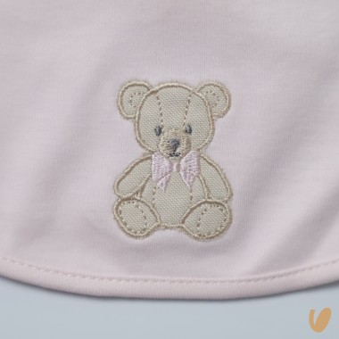 Round bavetta in cotton jersey with bear embroidery
