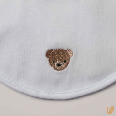 Round bavetta in cotton jersey with bear embroidery