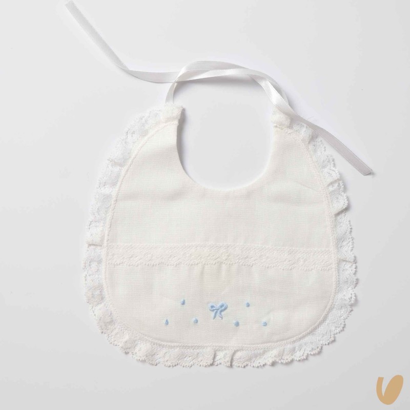 Pure linen bavetta with embroidery of love knots made by hand and Lace Valencienne