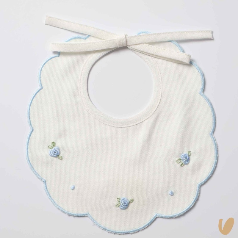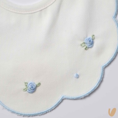 Scalloped bavetta in cotton piqué with roseline embroidery steam point made by hand