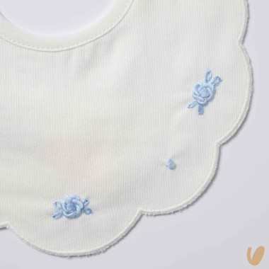 Scalloped bavetta in cotton piqué with embroidery of roses made by hand