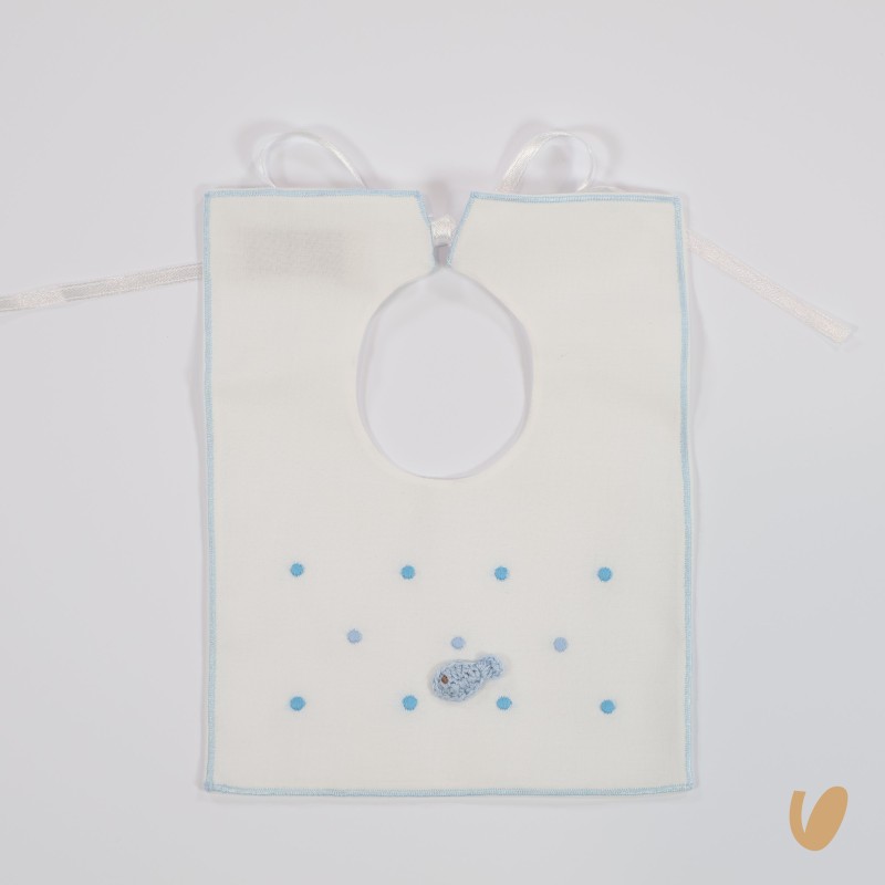 Square stick with handmade embroidery of crochet fish