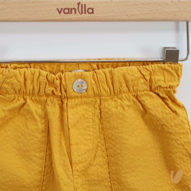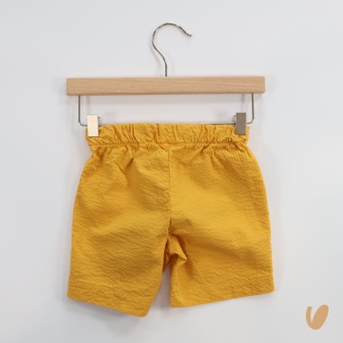 Bermuda in fresh and removable seersucker fabric, with elastic waist, button in aesthetic mother of pearl, funzial pockets on the front