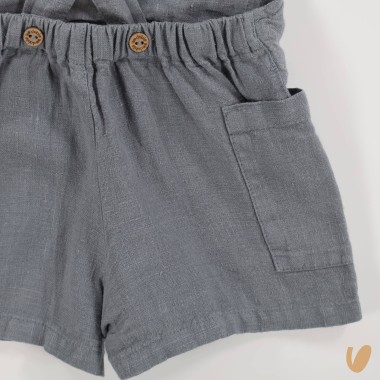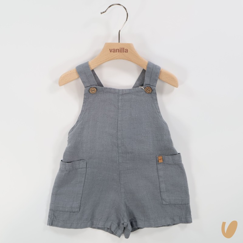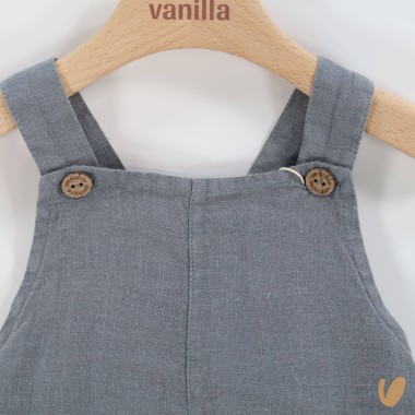 Pure linen salopette with pockets and wooden buttons