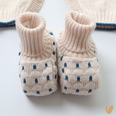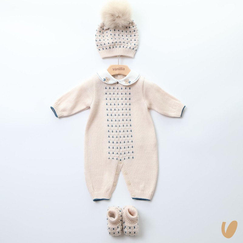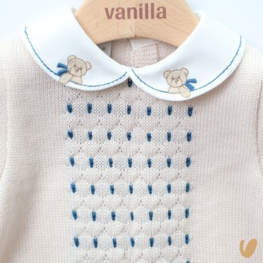 Beige jackets with undersed sapphire blue, embroidered collar with bears