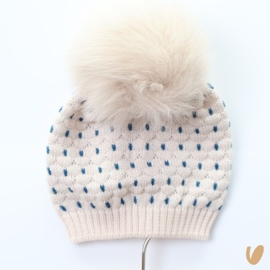 Hat with pontom in real fur