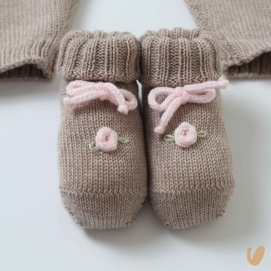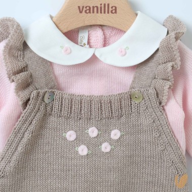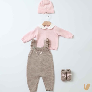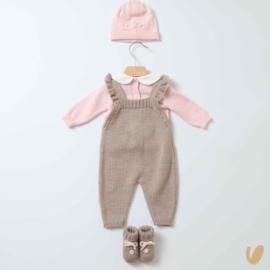 Complete birth in pure wool composed of knit, dungarees, hat and fouls