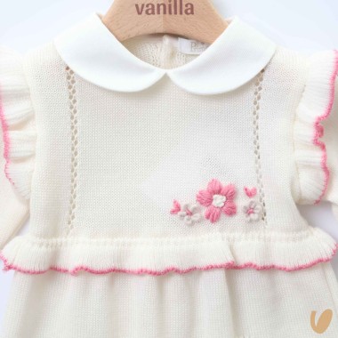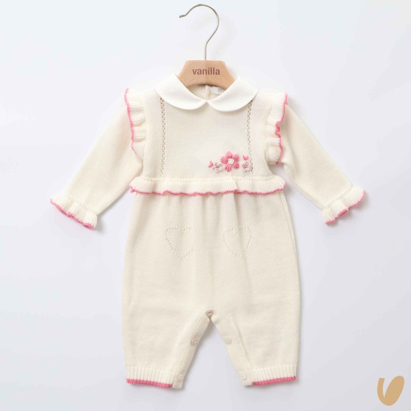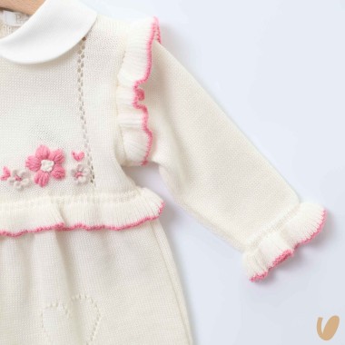 Tutina with rouche embroidered holes and heart pockets