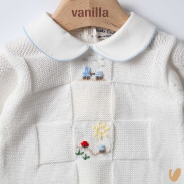 Bullet with hand embroidery of trains, cars and boats
