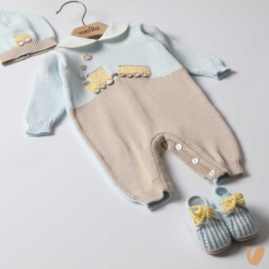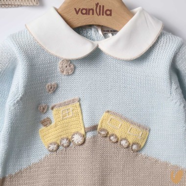 Two-tone with a crochet handmade train application