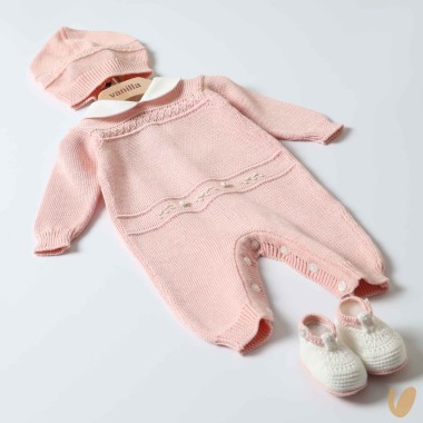 Composed of jumpsuits, hats and shoes made in a particular yarn said moulinè that has a threads of different colors that make coloring unique