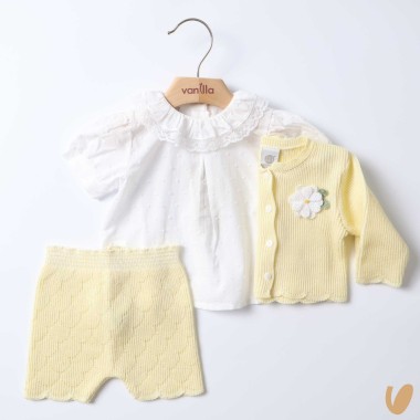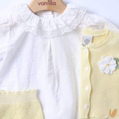 Composed of short sleeve shirt in Plumetis and Rouche collar