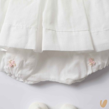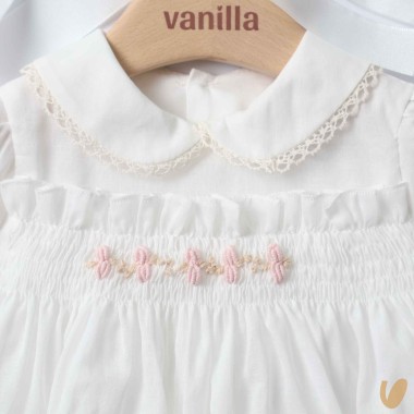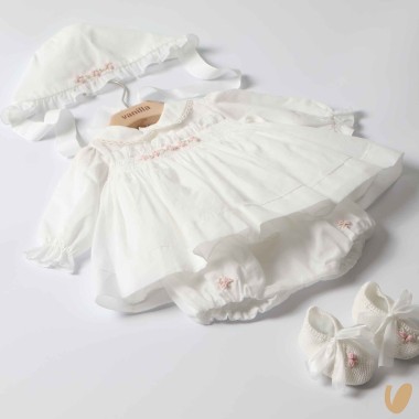 Composed of a long sleeve embroidery embroidery SMOCK POINT AND ROSELLINE STEAM POINT COLLET WITH MACREAMÈ RIGHT