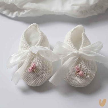 Brorocher's shoe with ribbon and rose embroidery ribbon