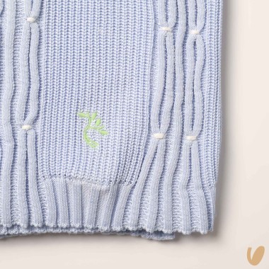 Rombi knitting with tree embroidery symbol of your and our commitment to the planet, for its future, made of natural beech fiber from artisan hands, to accompany those who grow with sweetness every day.