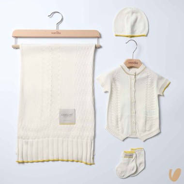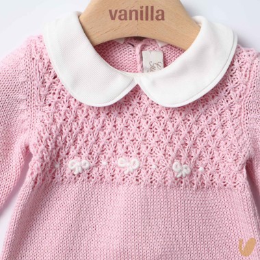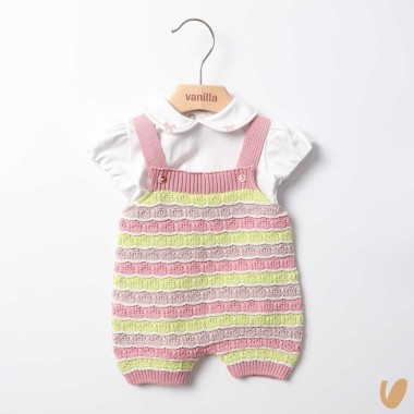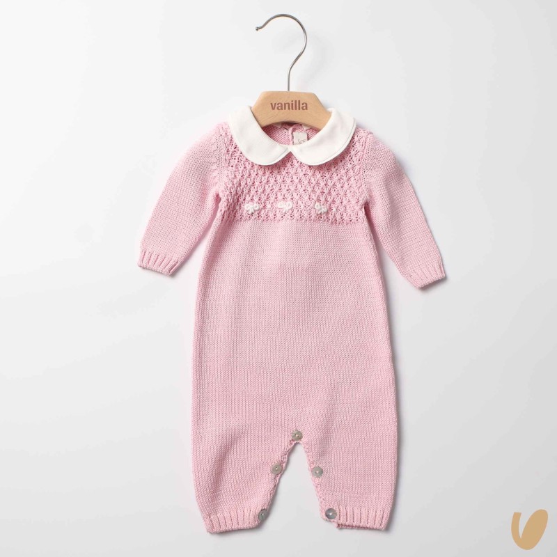 Tutina in pure cotton thread, collar in piquè, mother-of-pearl buttons