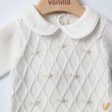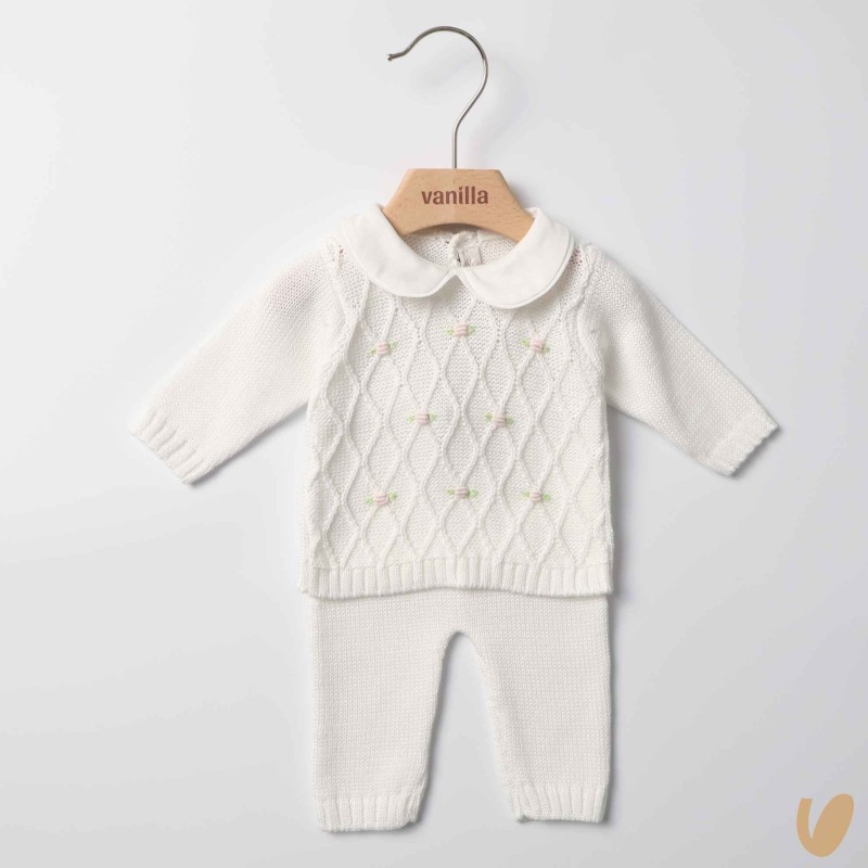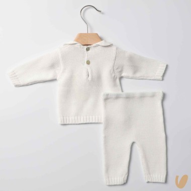 Complete in pure cotton thread, collar in piqué, mother-of-pearl buttons