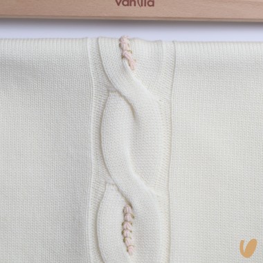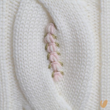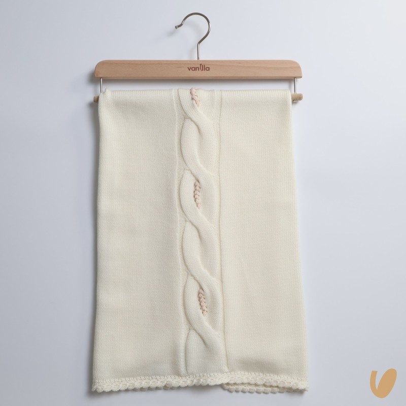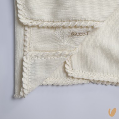 Pure wool blanket with processing of roselline embroidery braids and crochet edge