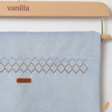 Removable chenille blanket with prince edge of Wales and bee nest embroidery