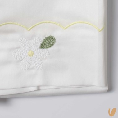 Sheets from above with hand-made daisies application
