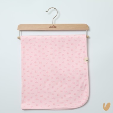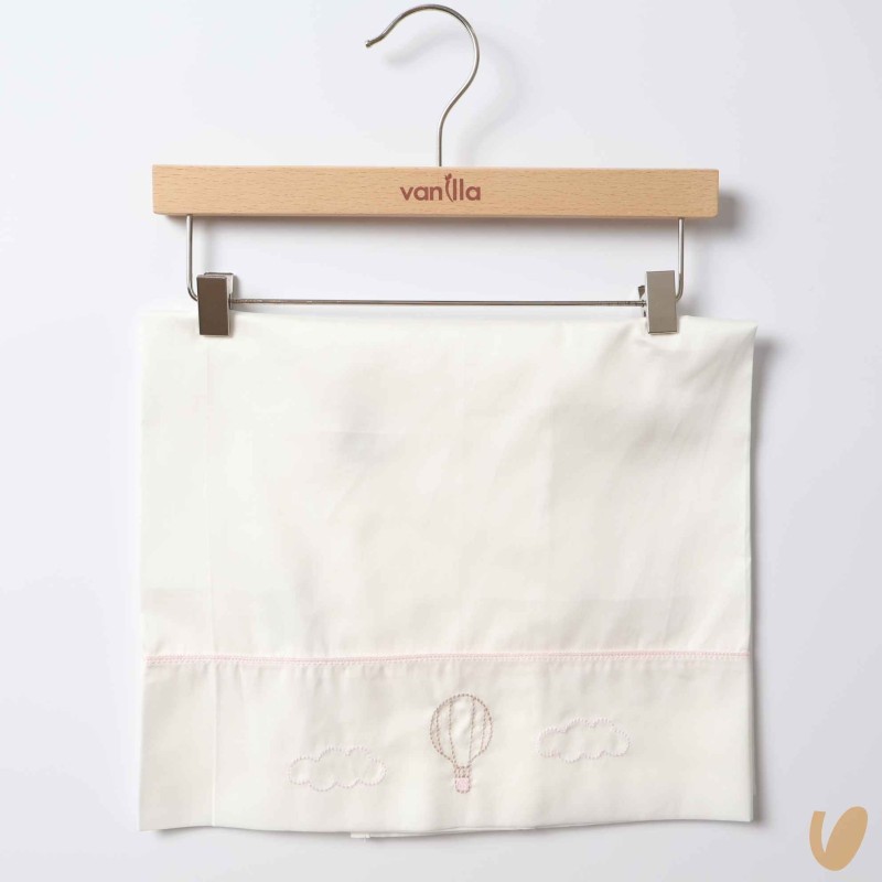 Sheets from above with hot air balloon embroidery and speech bubbles